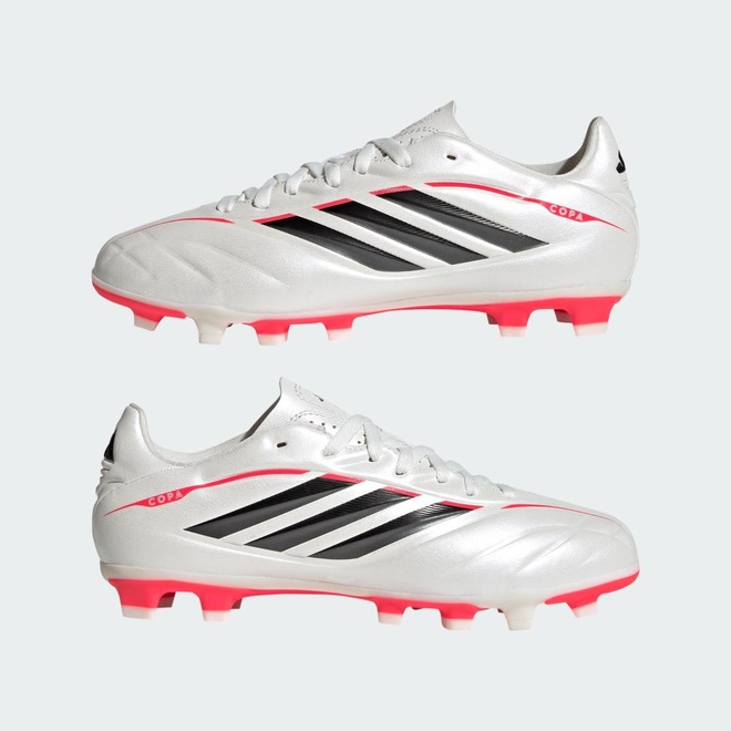 A Chuteira Campo COPA PURE IV CLUB foi criada para jovens entusiastas do futebol que valorizam o estilo e o desempenho. Ela prioriza o conforto, a sensibilidade ao toque e o ajuste perfeito em seu design. A parte superior de material sintético é durável e flexível, adaptando-se ao formato do pé para uma modelagem aconchegante. As impressões táteis em 3D ajudam na aderência da bola, permitindo um controle preciso durante o jogo. Com perfurações na língua para ventilação, esta chuteira ajuda o pé pequeno a se manter fresco e confortável durante toda a partida. Ela oferece ótima tração tanto em campos naturais quanto em superfícies de grama artificial. Há uma língua flutuante com cadarço para facilitar a entrada e o ajuste, e a elegante marca adidas nas laterais e na parte medial. Esta chuteira faz uma declaração ousada no campo.