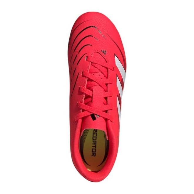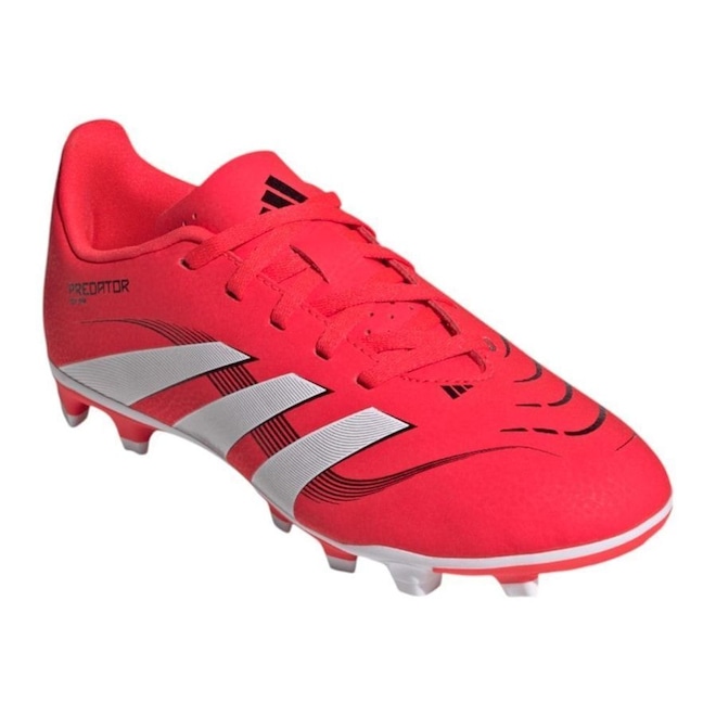 A Chuteira Adidas Predator Club é ideal para os jogadores que buscam aprimorar suas habilidades em campo. Com cabedal em material sintético na cor laranja vibrante, oferece durabilidade e conforto. Seu solado é equipado com travas altas e fixas, garantindo excelente tração e controle, proporcionando desempenho superior em todas as partidas.