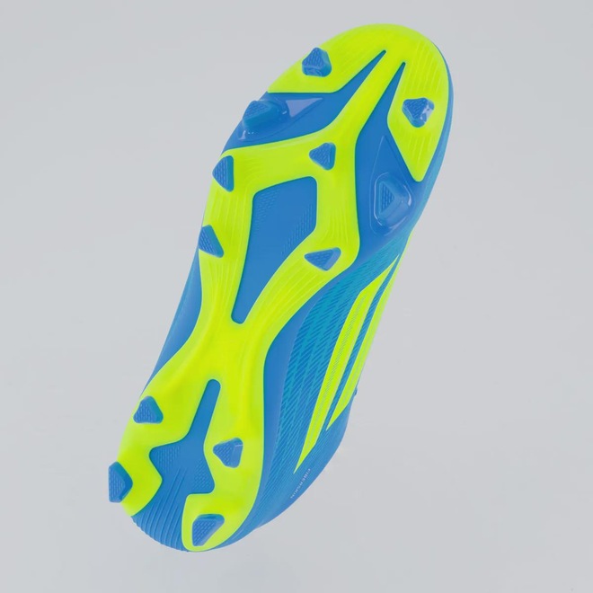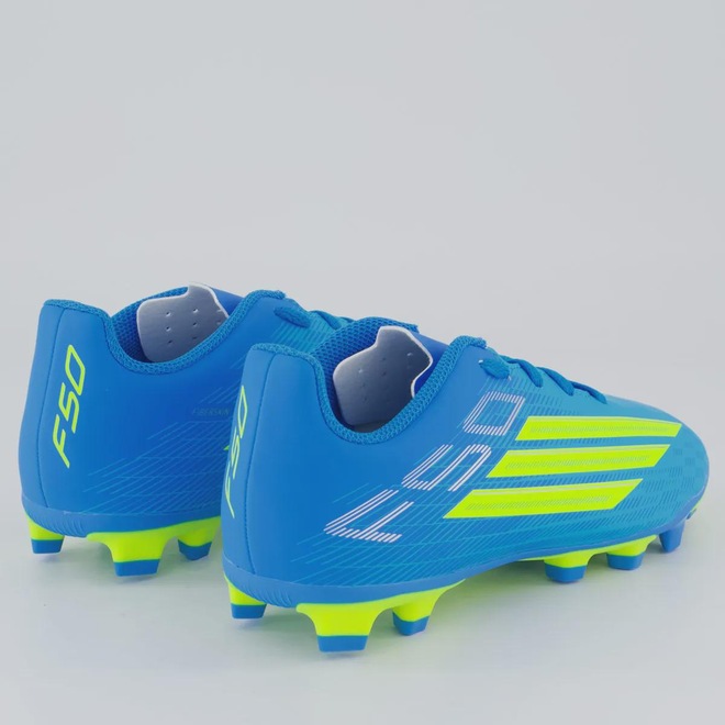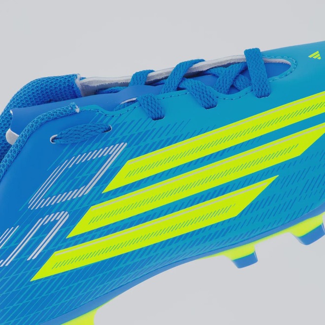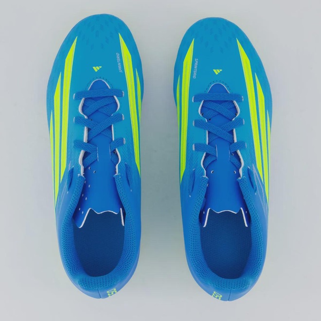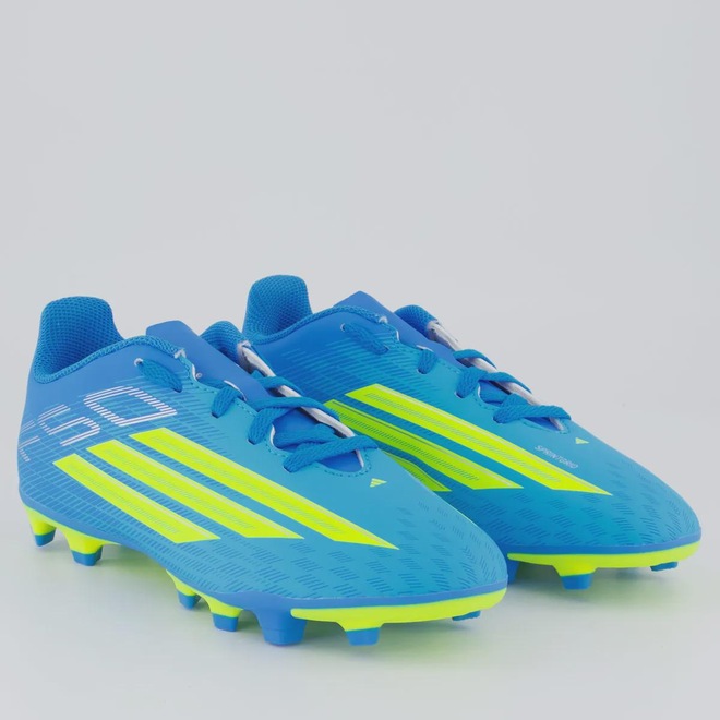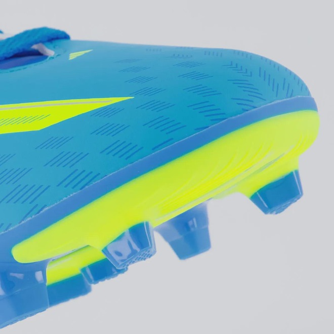 Tecnologia Fiberskin: Material sintético leve com impressões texturizadas que otimizam o contato com a bola, oferecendo maior controle e durabilidade. Sprintgrid: Textura em relevo aplicada estrategicamente no cabedal para proporcionar maior aderência e controle de bola em altas velocidades. Composição Cabedal (parte superior): Material sintético Forro: Têxtil com acolchoamento reforçado Solado: Borracha com travas altas e fixas, colado Palmilha: Em EVA forrado e removível Lingueta: Fina e flexível Cor Predominante: Azul Indicado para: Campo Gênero: Unissex Origem: Importada Ajuste: Cadarço Idade: Juvenil Peso aproximado: 370g o par n° 33