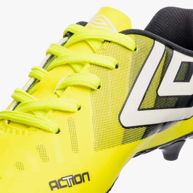 Indicada para jogadores juvenis iniciantes que se destacam dentro de campo, a Chuteira Campo Umbro Action Jr exibe artes gráficas personalizadas aplicadas em camadas, com efeito degradê, para um visual autêntico e moderno no melhor estilo Umbro. Cabedal confeccionado em material laminado de fácil limpeza e manutenção. Possui grafismos em “layers” com aplicação de verniz incolor sobre as artes, Diamante Umbro em destaque na lateral, assinatura do modelo na parte frontal e palmilha interna macia em EVA forrado. O solado de campo FG de 14 travas é construído todo em PVC, que oferece função antiderrapante e resistência à abrasão. INFORMAÇÕES TÉCNICAS: CABEDAL: 100% SINTÉTICO FORRO: 100% POLIÉSTER PALMILHA: 90% EVA 10% POLIÉSTER SOLA: 100% - PVC Medidas Aproximadas (Tamanho Palmilha): 24: 16,1 cm 25: 16,8 cm 26: 17,4 cm 27: 18,0 cm 28: 18,6 cm 29: 19,2 cm 30: 19,9 cm 31: 20,6 cm 32: 21,2 cm 33: 22,2 cm 34: 22,9 cm 35: 23,5 cm 36: 24,2 cm .