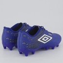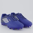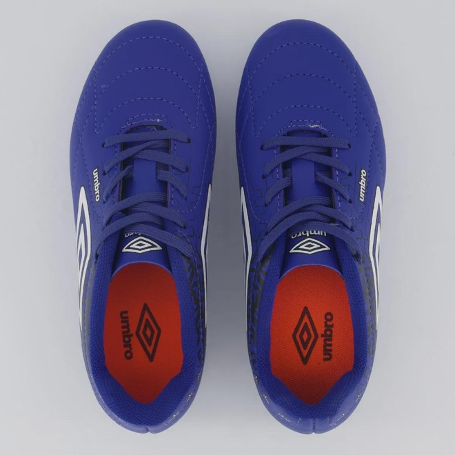 Composição cabedal (parte superior): Produzido em material sintético Palmilha: Em EVA e removível; facilita na higienização Forro: Revestimento em material sintético acolchoado Solado: TPU com travas altas e fixas, colado Lingueta: Fina e flexível Cor predominante: Azul Indicado para: Campo Origem: Nacional Ajuste: Cadarço Idade: Juvenil Peso aproximado: 360g par nº 33