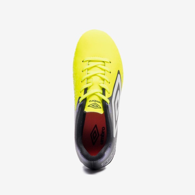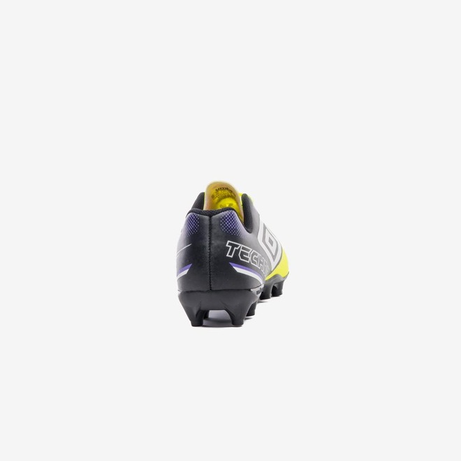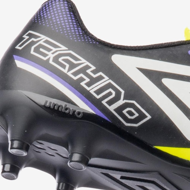 A Chuteira Campo Umbro Techno II Jr é perfeita para jovens jogadores que buscam um design moderno e ousado. Com efeito pixel em acabamentos fosco e brilhante, o modelo se destaca pela aparência arrojada. O cabedal é feito em material laminado com textura plana e contrastes, com grafismo em serigrafia e o Diamante Umbro na lateral. A palmilha interna em EVA forrada oferece conforto, e o solado FG de 14 travas em PVC proporciona aderência e performance no campo.