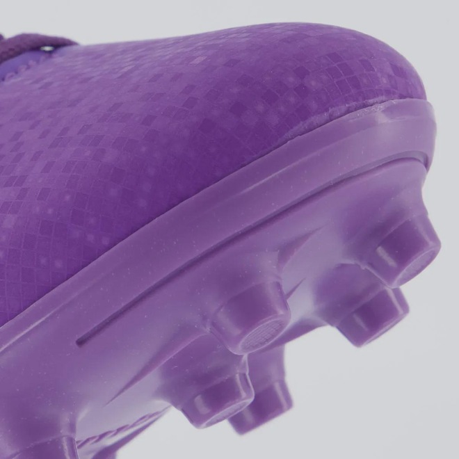 Composição Cabedal (parte superior): Produzido em material sintético Forro: Têxtil com acolchoamento reforçado no calcanhar Palmilha: Em EVA forrado e removível Solado: PVC com travas altas e fixas Lingueta: Fina e flexível Cor Predominante: Roxa Indicado para: Campo Origem: Nacional Gênero: Unissex Ajuste: Cadarço Idade: Juvenil Peso aproximado: 330g o par n° 33