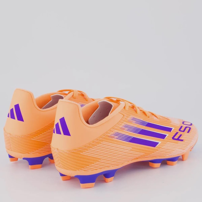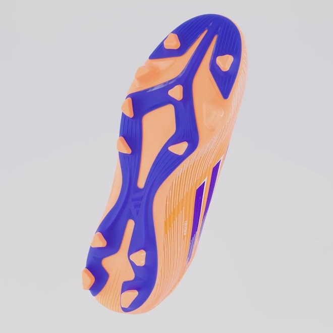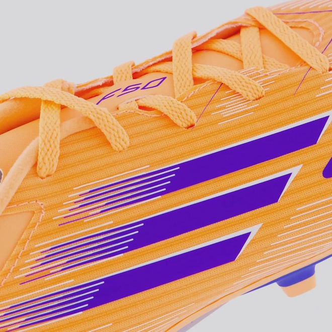 Tecnologias Sprintgrid: Recurso aplicado ao cabedal da chuteira que combina leveza e suporte estrutural. Seu design em grade oferece estabilidade nas mudanças rápidas de direção e contribui para maior precisão e controle em alta velocidade. FIBERSKIN: Cabedal leve e resiste para suporte e amortecimento, favorecendo o controle e a precisão nos movimentos em alta velocidade. Composição Cabedal (parte superior): Material sintético Forro: Têxtil com acolchoamento reforçado Palmilha: Em EVA forrado e removível Solado: TPU com travas altas e fixas Lingueta: Fina e flexível Cor Predominante: Laranja Gênero: Masculino Origem: Importada Ajuste: Cadarço Peso aproximado: 570g o par n° 40