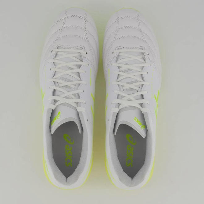 Composição cabedal (parte superior): Couro de canguru com parte em sintético Forro: Têxtil com acolchoamento reforçado no calcanhar Palmilha: Em EVA, forrado, moldado e removível Solado: PU com travas altas e fixas Cor Predominante: Branca Lingueta: Fina e flexível Indicado para: Campo Gênero: Masculino Origem: Importado Ajuste: Cadarço Peso aproximado: 420g o par n° 40