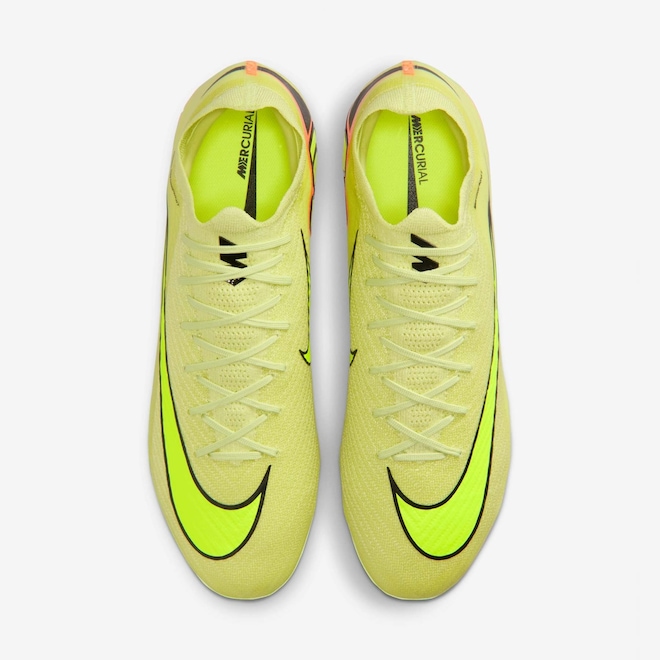 O cabedal todo em Flyknit foi desenvolvido para velocidade. O Atomknit, um Flyknit incrivelmente leve e forte, nas laterais reduz o peso e fornece suporte. O Gripknit, o Atomknit e o Flyknit se combinam para formar o cabedal Mercurial mais fino até hoje, aproximando você da bola e reduzindo o tempo de amaciamento.