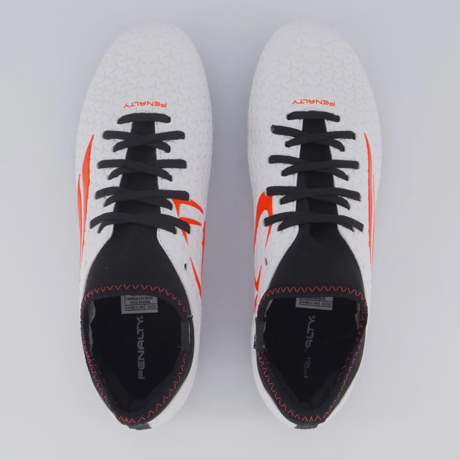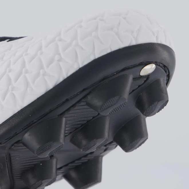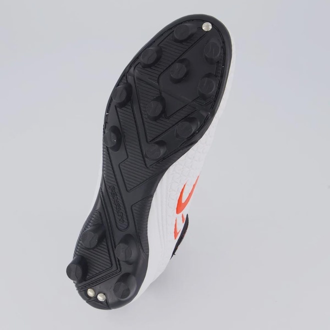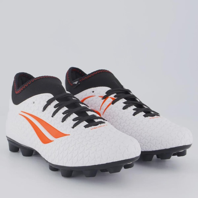 Tecnologias HiperFlex: Canaletas posicionadas estrategicamente para auxílio na flexão e movimentação dos pés. Micropower: Proporciona leveza, resistência e toque confortável para maior controle da bola. Composição cabedal (parte superior): Confeccionado em material sintético Palmilha: EVA plana 3,5mm; oferece maior conforto aos pés Forro: Revestimento em material sintético Solado: Borracha com travas altas, fixas e circulares, colado Lingueta: Integrada Cor predominante: Branco Indicado para: Campo Origem: Nacional Ajuste: Cadarço Gênero: Masculino Peso aproximado: 480g o par nº40