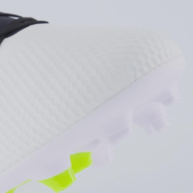 Composição cabedal (parte superior): Material sintético com partes em têxtil Palmilha: Em EVA e removível; facilita na higienização Forro: Revestimento em material sintético acolchoado Solado: TPU com travas altas e fixas Cor predominante: Branca Indicado para: Campo Lingueta: Integrada Gênero: Masculino Origem: Nacional Ajuste: Cadarço Peso aproximado: 520g par nº 40