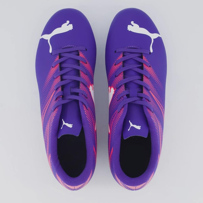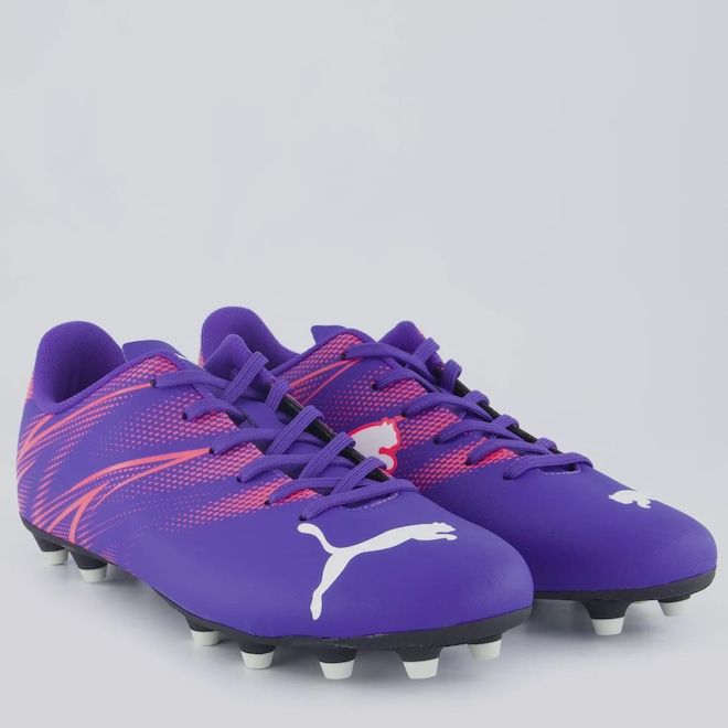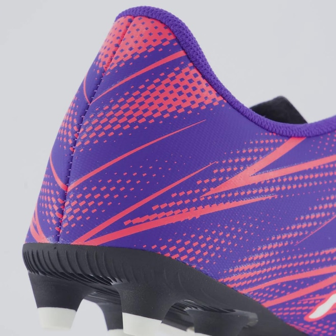 Composição cabedal (parte superior): Material sintético reforçadoPalmilha: EVA e removível; facilita o momento da higienizaçãoForro: Revestimento em têxtil com acolchoamento no calcanharSolado: TPU com travas fixas e circulares, coladoCor predominante: RoxaLingueta: Fina e flexívelIndicada para: CampoGênero: MasculinoOrigem: NacionalAjuste: CadarçoPeso aproximado: 440g o par nº 41