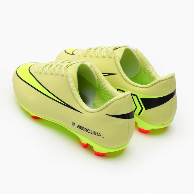 Material sintético no cabedal apresenta detalhes com texturas pequenas que proporcionam aderência para melhor controle de bola ao driblar em altas velocidades.