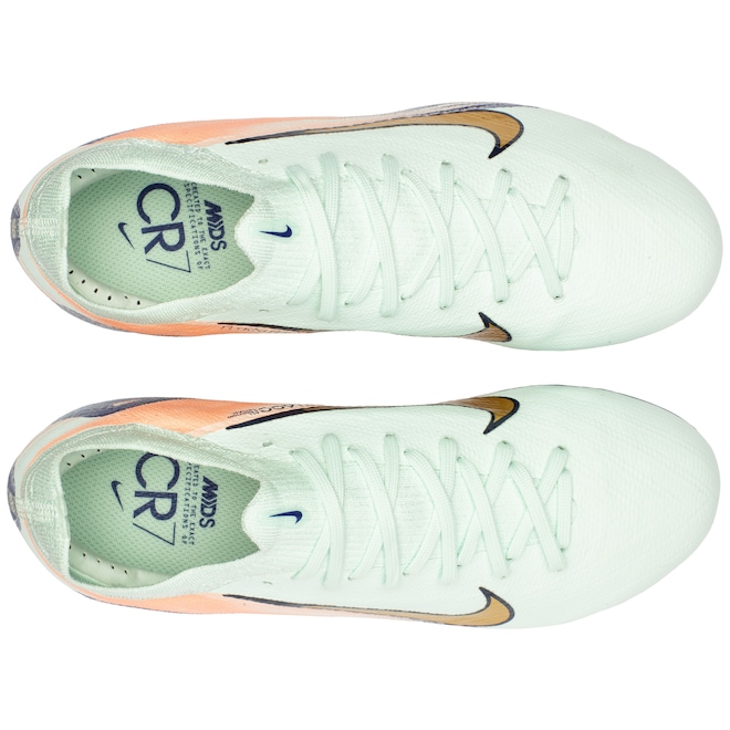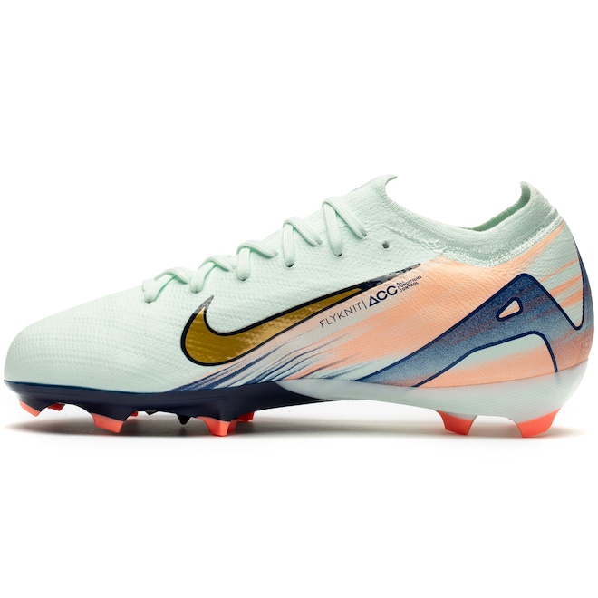 Com as tecnologias Air Zoom e All Conditions Control (ACC), a Nike Mercurial Vapor 16 Pro MDS Júnior garante amortecimento de impacto e aderência superior, seja em campo seco ou molhado. A textura aderente da ACC permite maior controle da bola, enquanto o Air Zoom oferece mais leveza e resposta a cada movimento.