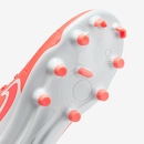 material sintético FlyTouch Lite trabalhado é extremamente macio. Ele ajuda a chuteira a se moldar ao seu pé para conforto sem esticar demais o material. A construção da língua com acolchoamento adicional oferece uma sensação segura e conforto em zonas de chute chave. Forro de microfibra cria uma sensação mínima.