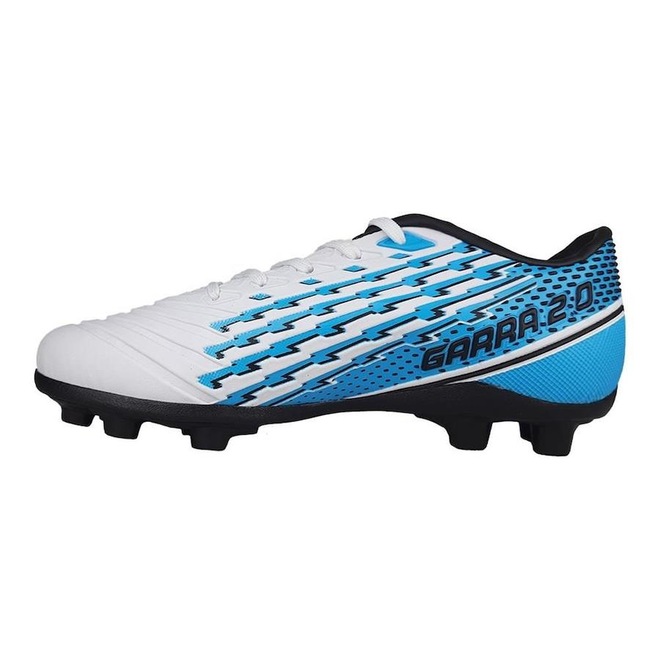 Com fechamento em cadarço de amarrar proporcionando maior ajuste e segurança no seu calce, com a palmilha em Eva Plana 3,5 MM auxiliando no conforto da sua passada, solado conta com a tecnologia Hiperflex, são canaletas posicionadas estrategicamente para auxílio na flexão e movimentação dos pés, conta com a tecnologia de PVC oferecendo melhor resistência, que fará com que toda sua chuteira não se desgaste com facilidade.Modelo: Campo Garra Y-2.0;