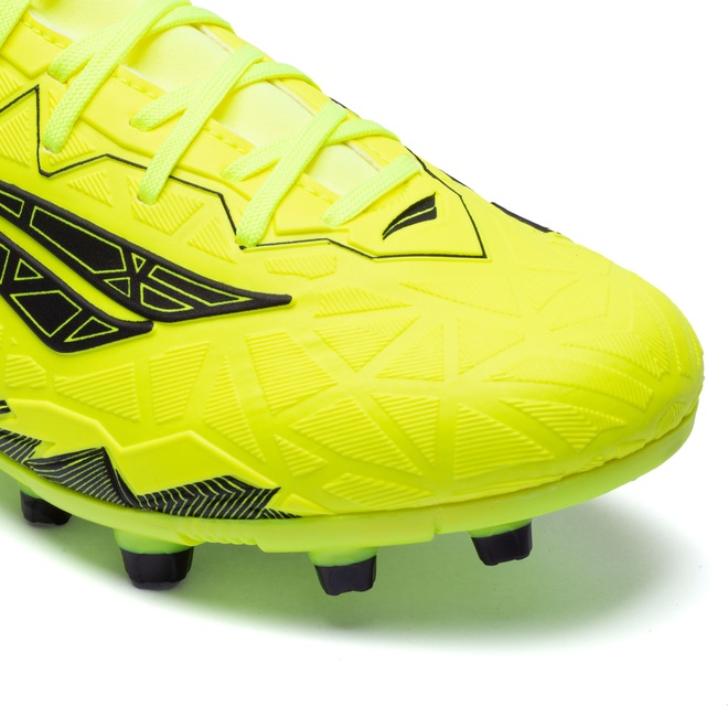 O cabedal(Parte Superior do calçado) em material resistente, proporcionando suporte e apoio dentro das quatro linhas.