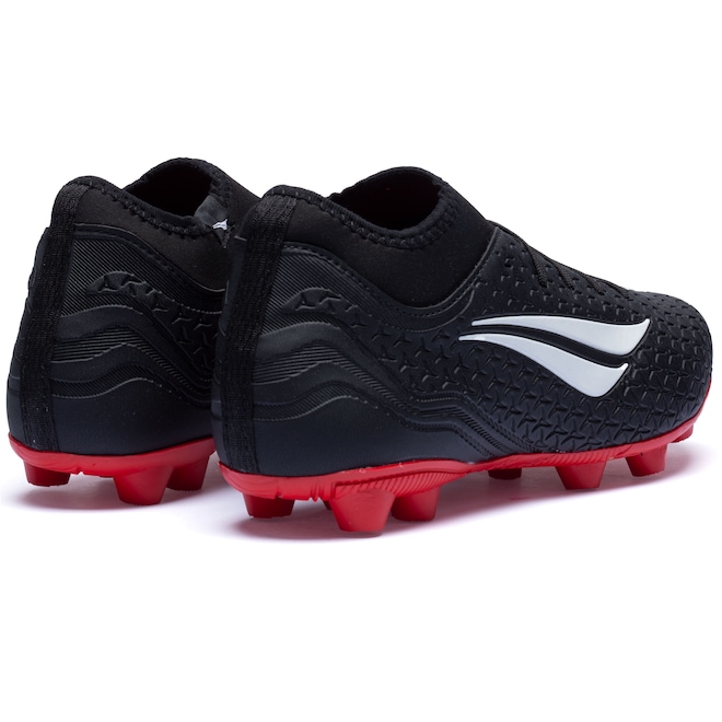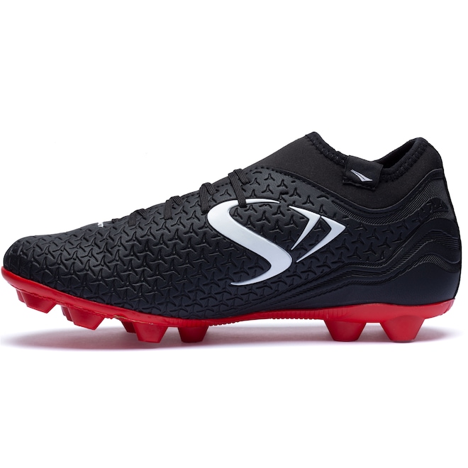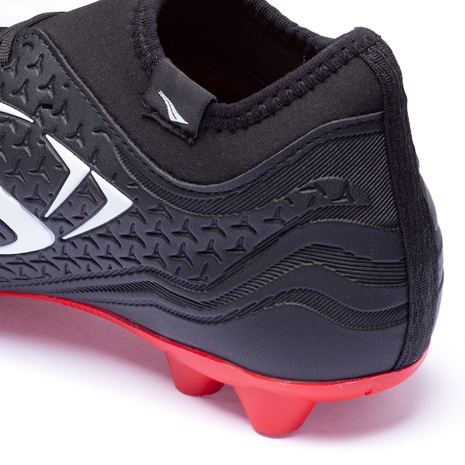 O cabedal(Parte Superior do calçado) em material resistente, proporcionando suporte e apoio dentro das quatro linhas.