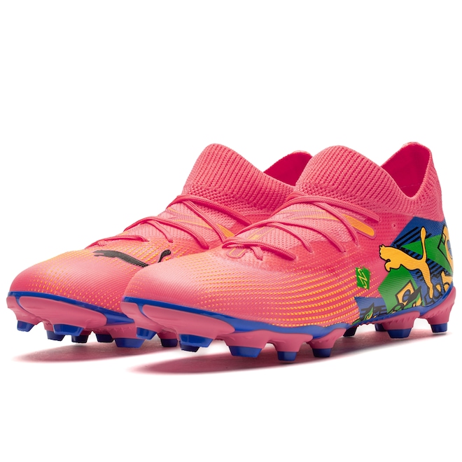 Leve o jogo do seu jovem craque ao próximo nível com a Chuteira de Campo Puma Future 7 Match Neymar Jr Júnior.