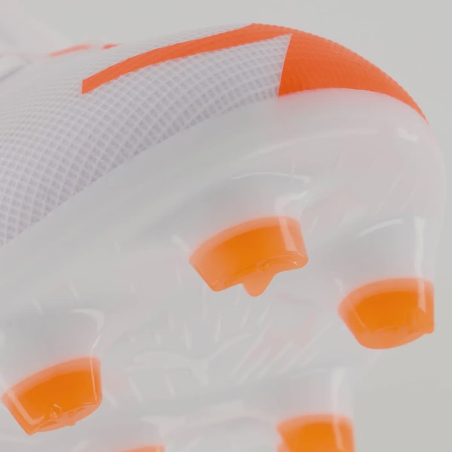 FastTrax: Travas complementadas com outras mais arredondadas na lateral para melhor tração em superfícies duras e grama artificial.Composição Cabedal (parte superior): Confeccionado em material sintético