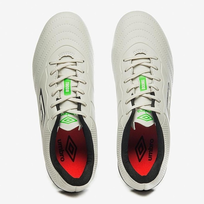 Reforço acolchoadoMaterial da Trava PU (Poliuretano) Tamanho da Trava Alta Tipo de Trava Fixa Estampa do Logo Estampado no Cabedal Faixa Etária Adulto Garantia do Fornecedor Contra Defeito de Fabricação Conteúdo da Embalagem 1 Par SAC do Fornecedor Umbro: (11) 2394 - 9702 Nível Iniciante