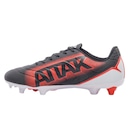 A Chuteira Campo Umbro Attak III foi desenvolvida para jogadores que buscam conforto e desempenho, renovando um clássico da marca. O cabedal frequenciado proporciona ajuste anatômico e maior durabilidade, enquanto o novo material do cabedal garante leveza e flexibilidade. A palmilha X-Comfort oferece amortecimento extra, assegurando máximo conforto. O solado em borracha proporciona excelente tração e aderência para movimentos precisos no campo.