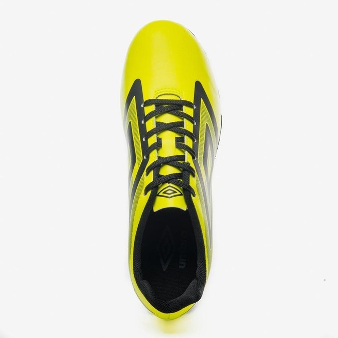A chuteira de campo Umbro conta com forro têxtil e reforço acolchoado no calcanhar para uma maior proteção.