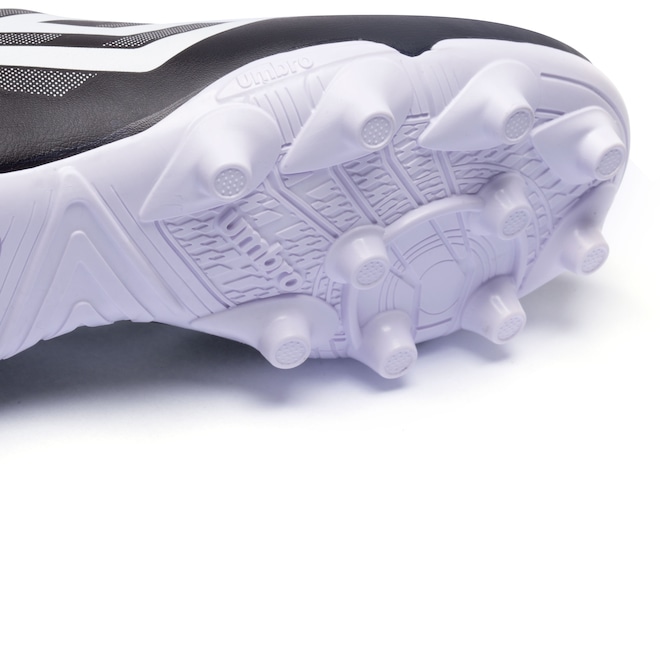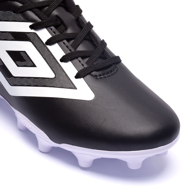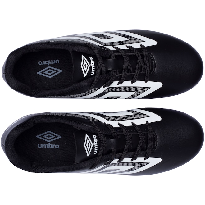 A palmilha é removível, lingueta flexível e forro com reforço acolchoado. Compre já a chuteira de campo Umbro Júnior!