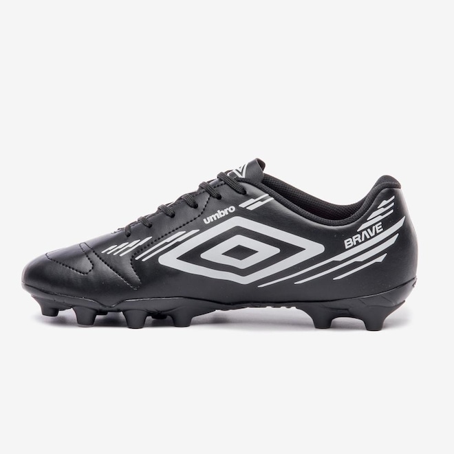 Com um design elegante nas cores preto e branco, a Chuteira Campo Umbro Brave não é apenas funcional, mas também estilosa. É a combinação perfeita de tecnologia e design, feita para atender às necessidades dos atletas mais exigentes.