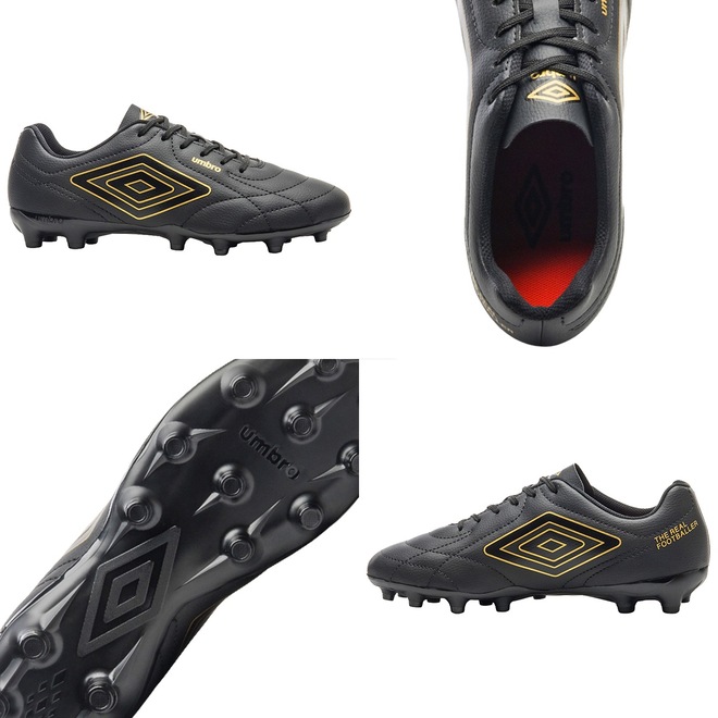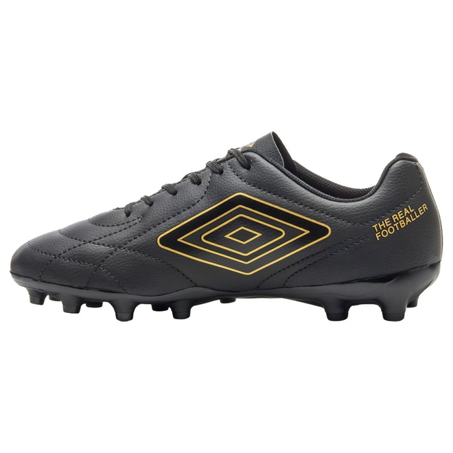 A Chuteira Campo Umbro Class Footballer é um modelo consagrado que chega com um visual renovado e aprimorado. Indicada para jogadores de nível intermediário que buscam qualidade e conforto para se destacarem em campo, a chuteira possui cabedal confeccionado em material laminado com textura de couro relax. O design inclui aplique gráfico em serigrafia e o logo Diamante centralizado na lateral, com costuras programadas em desenho clássico que garantem um acabamento sofisticado. A palmilha interna é macia, feita em EVA e forrada com tecido, proporcionando maior conforto. O solado de campo FG conta com 14 travas em PVC, apresentando um design minimalista e costura de reforço na parte frontal.