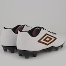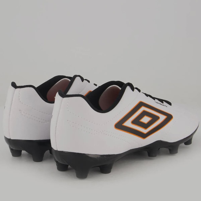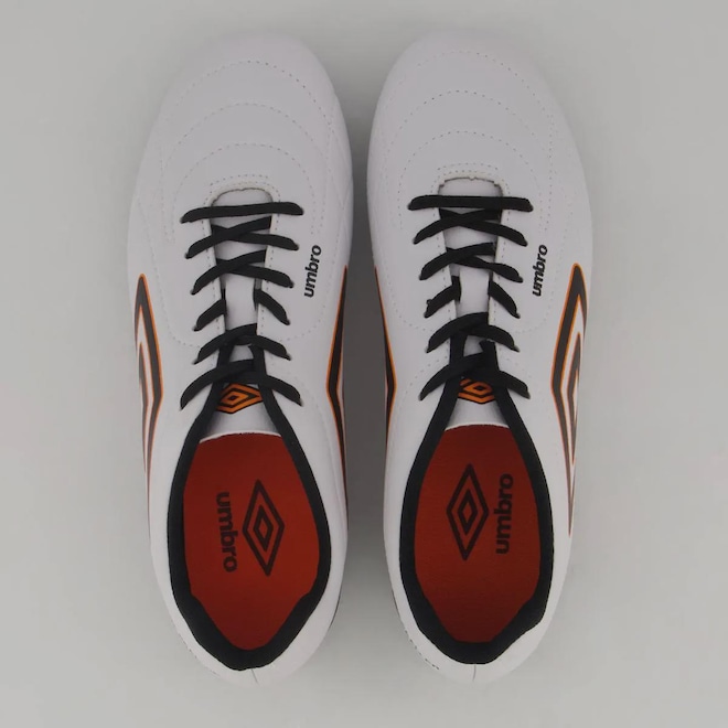 A Chuteira Campo Umbro Class Footballer é um modelo consagrado que chega com um visual renovado e aprimorado. Indicada para jogadores de nível intermediário que buscam qualidade e conforto para se destacarem em campo, a chuteira possui cabedal confeccionado em material laminado com textura de couro relax. O design inclui aplique gráfico em serigrafia e o logo Diamante centralizado na lateral, com costuras programadas em desenho clássico que garantem um acabamento sofisticado. A palmilha interna é macia, feita em EVA e forrada com tecido, proporcionando maior conforto. O solado de campo FG conta com 14 travas em PVC, apresentando um design minimalista e costura de reforço na parte frontal.
