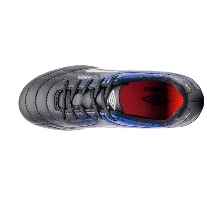 Descrição: A Chuteira Campo Umbro Class Neo atualiza um clássico da marca com design moderno. O cabedal sintético oferece toque refinado e durabilidade. O calcanhar acolchoado garante estabilidade, enquanto a palmilha em EVA proporciona conforto prolongado. O solado em PVC com 14 travas fixas assegura excelente tração e firmeza em gramados naturais, favorecendo arrancadas e mudanças de direção. Ideal para jogadores que buscam performance, controle e estilo em campo.