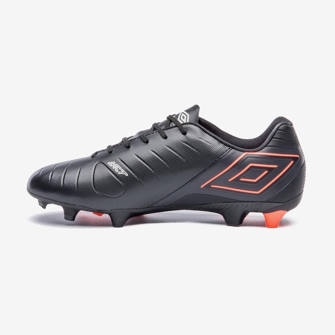 A Chuteira Campo Umbro Fifty VI combina inovação e conforto para jogadores iniciantes e intermediários. Seu design bicolor mescla texturas distintas, enquanto o cabedal laminado traz áreas texturizadas em alta frequência para melhor controle de bola. A boca deslocada para o lado externo proporciona um ajuste preciso, e a palmilha interna com tecnologia Soft Blue garante conforto superior. O solado Stealth FG em TPU, com 10 travas estratégicas, oferece tração e estabilidade para máxima performance.