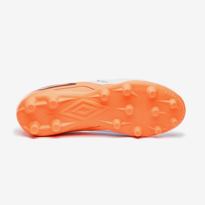 - Solado: Campo FG com 14 travas em PVC, ideal para diferentes tipos de campo.