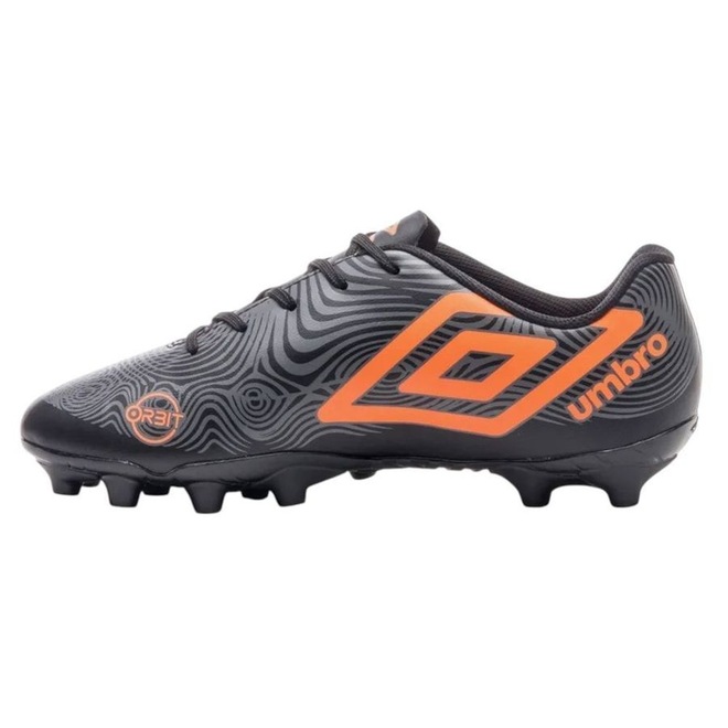 A Chuteira Campo Umbro Orbit é perfeita para jogadores iniciantes que desejam aliar conforto, resistência e estilo dentro de campo. Inspirada no modelo Adamant, ela traz grafismos exclusivos e a assinatura Orbit, que reforçam sua identidade. Seu cabedal laminado com serigrafia bicolor garante durabilidade, enquanto a palmilha em EVA forrado proporciona maciez e conforto. Já o solado FG em PVC, com 14 travas e costura reforçada, assegura estabilidade e tração em gramados naturais.