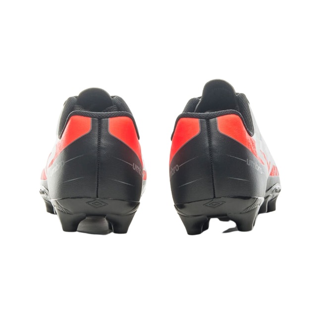 O cabedal (parte superior do calçado) é construído em material sintético de fácil manutenção com textura suave e acabamento laminado. Possui arte gráfica com cores contrastantes em serigrafia, Diamante Umbro na lateral, forro interno em poliéster e palmilha macia em EVA com tecido forrado. O solado de campo FG contém 14 travas em PVC com costura de reforço na parte frontal para maior durabilidade e firmeza.