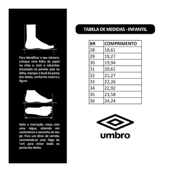 Reforço acolchoadoTamanho da Trava Alta Tipo de Trava Fixa Garantia do Fornecedor Contra Defeito de Fabricação Conteúdo da Embalagem 1 Par SAC do Fornecedor Umbro: (11) 2394 - 9702