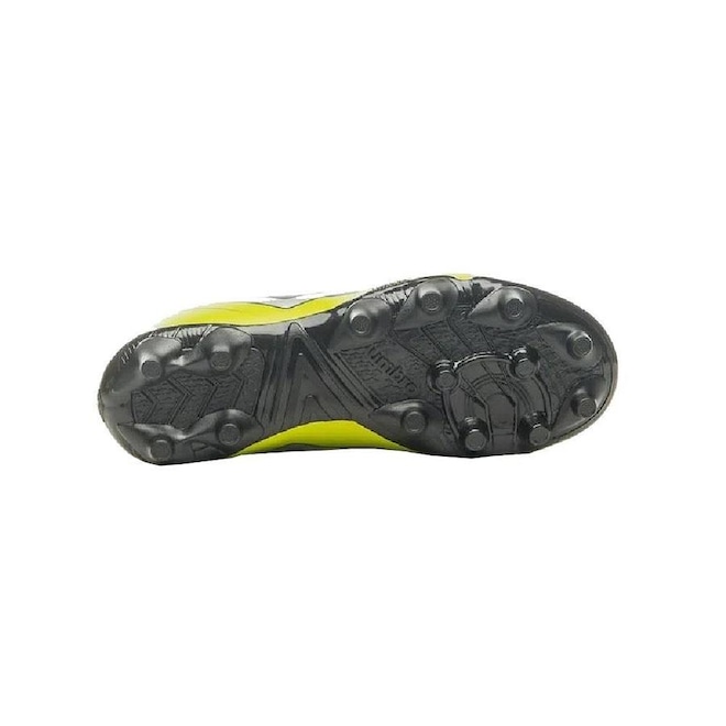 A chuteira Umbro conta com cabedal sintético, o seu ajuste é em cadarço e o solado é em TPU.