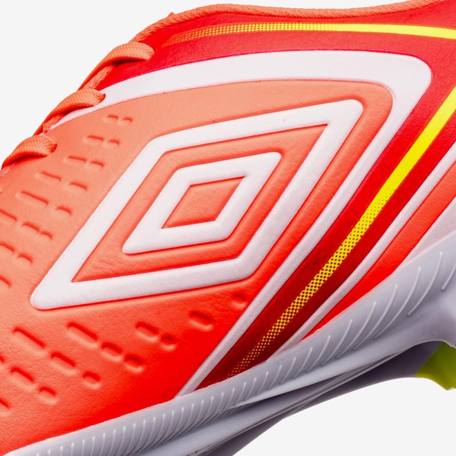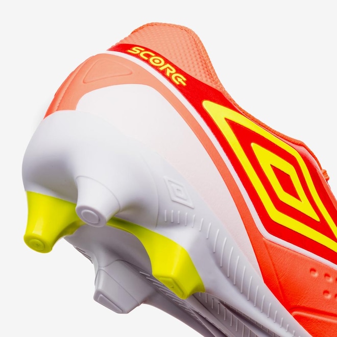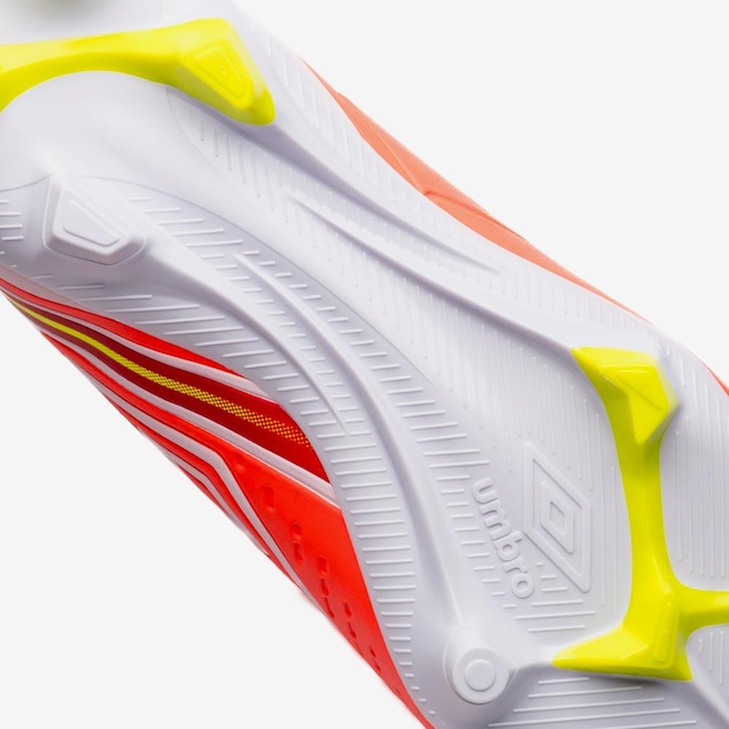 O solado de campo FG da Chuteira Umbro Score é equipado com 10 travas, incluindo uma trava central que proporciona estabilidade e tração em diferentes superfícies de gramado. Isso significa que você pode se mover com confiança e agilidade, aproveitando ao máximo cada jogada.