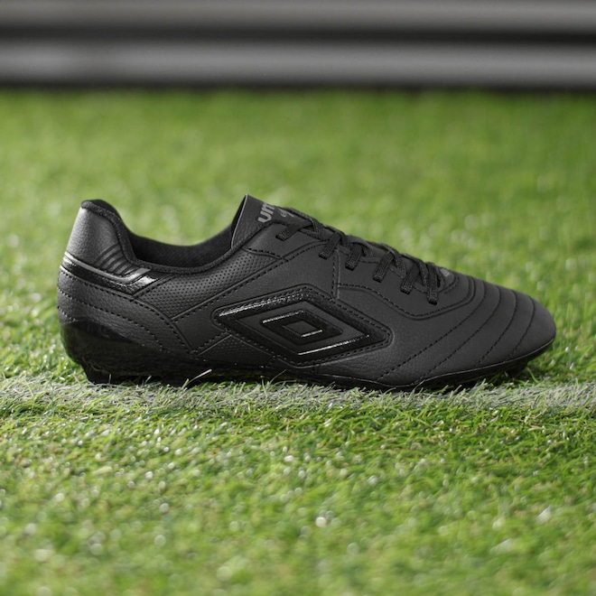 Estilo clássico, performance moderna. Conquiste o campo! Chuteira Umbro Campo Speciali Classic Preto - Masculino Ficha Técnica: Marca: Umbro Gênero: Masculino Cor: Preto Cabedal: Material sintético com costuras programadas para controle de bola Forro: 100% poliéster Palmilha: 90% poliuretano (PU), 10% poliéster Sola: 100% TPU bicolor, oferece firmeza e estabilidade Fechamento: Cadarço Indicação de uso: Jogos de futebol em campo Detalhes: Diamante Umbro nas laterais Alie o estilo clássico ao desempenho avançado com a Chuteira Umbro Campo Speciali Classic. Seu cabedal sintético, projetado com costuras estratégicas, proporciona controle absoluto da bola, enquanto o solado em TPU bicolor garante firmeza e agilidade durante os dribles. Leveza, conforto e estabilidade se unem para elevar sua performance. Conteúdo da embalagem: 1 par de Chuteiras Umbro Campo Speciali Classic Preto – Masculino