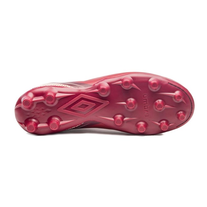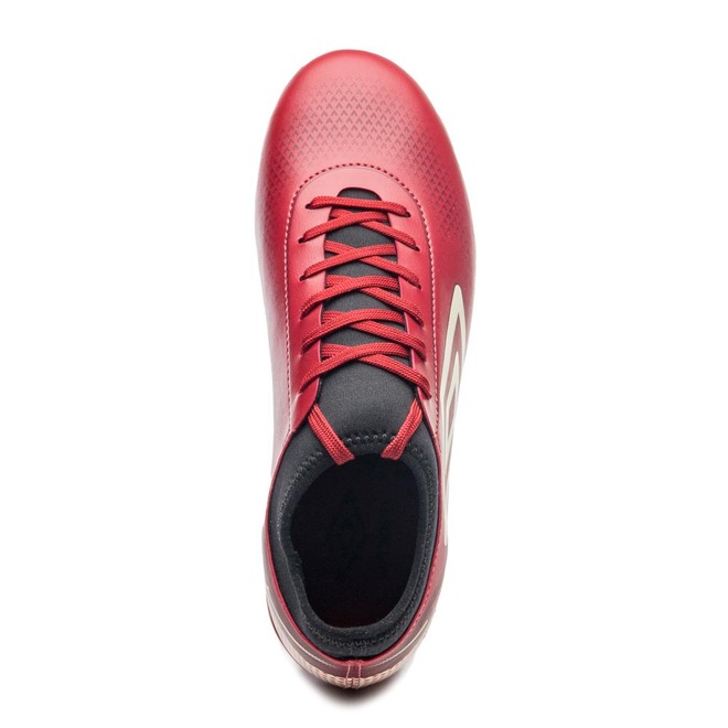 A Chuteira Campo Umbro Top Speed League se destaca pela leveza e sensibilidade no toque com a bola. O cabedal assimétrico combina colarinho em tecido com elastano e sobreposição de laminado texturizado com grafismo e Diamante Umbro lateral. O ajuste é feito por meia com debrum e cadarços. Conta com palmilha em EVA forrado e solado FG em PVC com 11 travas cônicas estrategicamente posicionadas para tração e estabilidade.