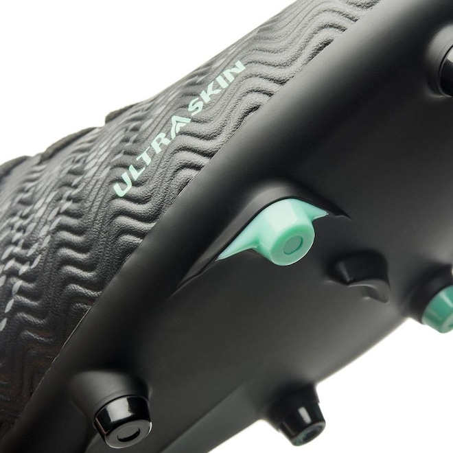 A Ultraskin chega repaginada com o cabedal (parte superior do calçado) extremamente leve e respirável sendo assimétrico, calçando o pé do craque com aconchego para arriscar as melhores jogadas, construído em material laminado com textura integral e design gráfico com Diamante Umbro em destaque frontal e duas cores de serigrafia.
