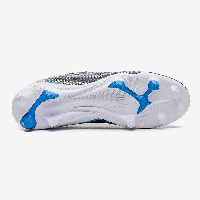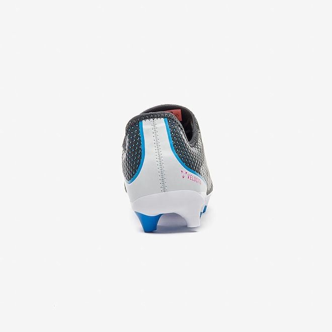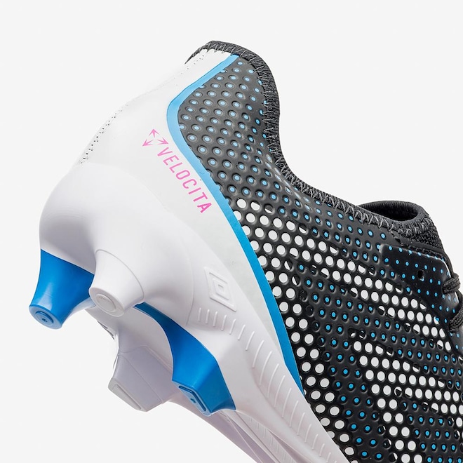 Inspirada no design da chuteira profissional Velocita Matrix, a Chuteira de Campo Umbro Velocita IX Club segue o modelo slip-on de fácil calce com um visual marcante e moderno que se adequa a todos os estilos de jogadores iniciantes a intermediários. Seu cabedal em mesh com elastano na parte superior oferece máxima sensação de conforto e ajuste perfeito durante as partidas e treinos em campo. Cabedal confeccionado em material laminado com alta frequência e serigrafia assimétrica diversificada para cada variante. Possui mesh com elastano na área do peito do pé e na lingueta, atacador estilizado, Diamante Umbro inserido graficamente na lateral externa, Umbro Letter também inserido graficamente na lateral interna, lingueta em mesh com elastano, forro traseiro em mesh com acabamento superior em debrum para maior resistência à abrasão e palmilha interna macia em EVA forrado. O solado de campo STEALTH FG de 10 travas, com trava central de tração e textura de base, é construído todo em TPU com travas altas bicolores posicionadas.