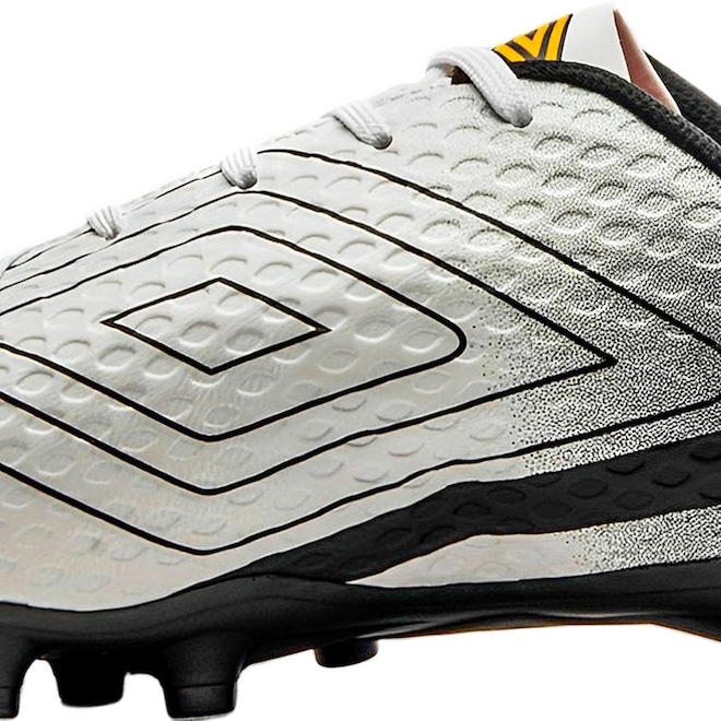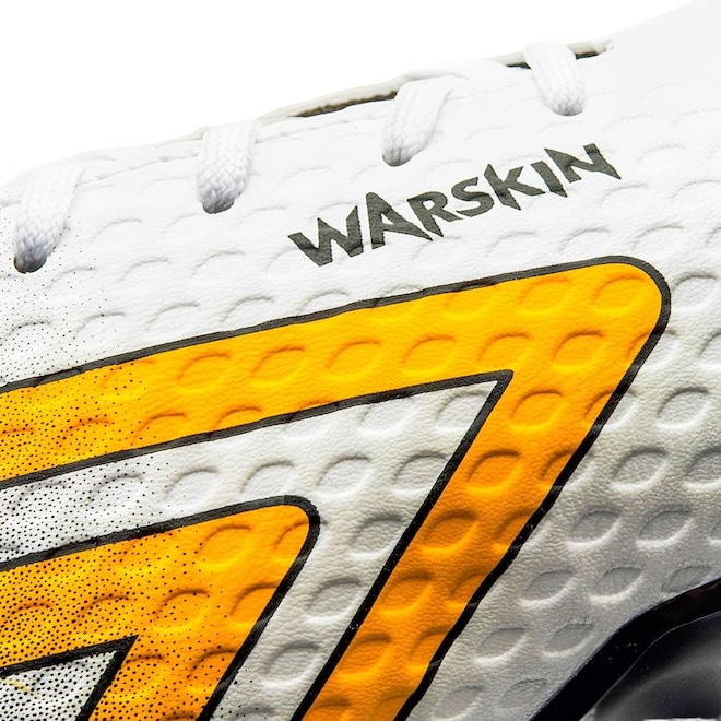 Chuteira de Campo Umbro Warskin Masculina A Chuteira de Campo Umbro Warskin Masculina foi especialmente projetada para atender às necessidades dos jogadores que buscam excelência e controle durante as partidas. Apresentando um design inovador e altamente funcional, o cabedal desta chuteira oferece um visual marcante com um padrão de degradê e uma textura única que utiliza um novo tipo de cilindro para garantir um grip aprimorado no momento do chute. Fabricado a partir de um material laminado com aplicação contínua em rolo em toda sua extensão, o cabedal exibe um grafismo em serigrafia em duas tonalidades, proporcionando um efeito degradê moderno e dinâmico. A assinatura Warskin é aplicada de forma elegante e discreta próxima ao atacador, enquanto o distintivo Diamante Umbro se destaca de maneira sutil ao longo da lateral, adicionando um toque de sofisticação ao design global da chuteira. A palmilha, feita de EVA macio com revestimento de poliéster, proporciona um apoio adicional e um conforto suave durante o uso. O solado de campo FG apresenta 14 travas estrategicamente posicionadas, com reforços costurados na parte frontal, tudo isso composto por PVC durável, garantindo aderência e estabilidade em diversos tipos de superfície. Informações:Ideal para: futebol de campo.Cabedal: em material sintético laminado. Fechamento: em cadarço para melhor ajuste aos pés.Solado: em borracha com travas fixas. Peso: 223g aproximadamente - número 39. O peso varia de acordo com a numeração. Garantia do Fabricante: 90 dias contra defeito de fabricação.ref: M129BV