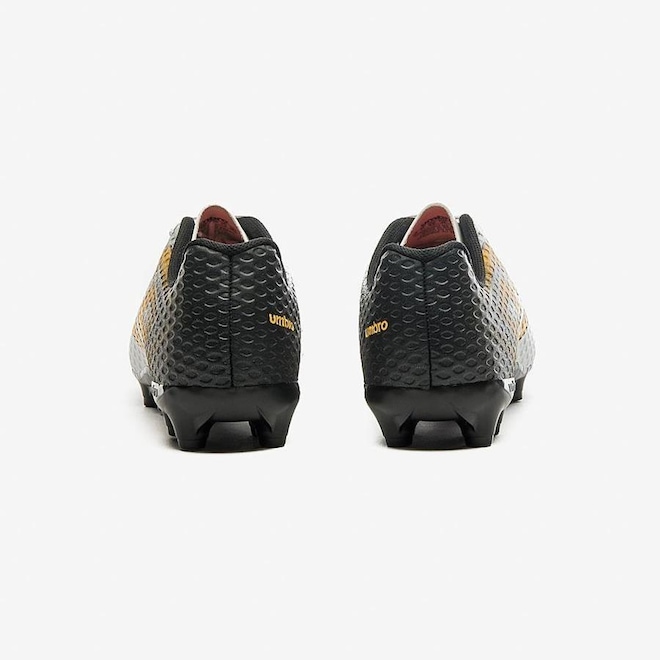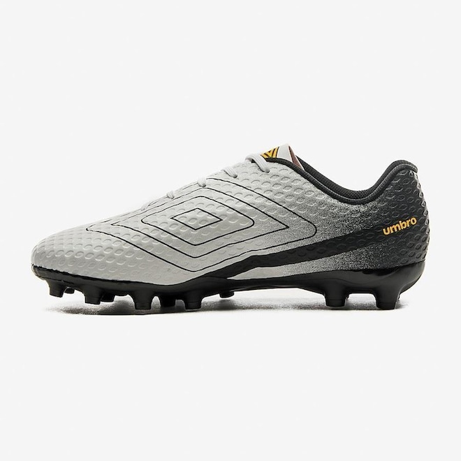 Chuteira de Campo Umbro Warskin Masculina A Chuteira de Campo Umbro Warskin Masculina foi especialmente projetada para atender às necessidades dos jogadores que buscam excelência e controle durante as partidas. Apresentando um design inovador e altamente funcional, o cabedal desta chuteira oferece um visual marcante com um padrão de degradê e uma textura única que utiliza um novo tipo de cilindro para garantir um grip aprimorado no momento do chute. Fabricado a partir de um material laminado com aplicação contínua em rolo em toda sua extensão, o cabedal exibe um grafismo em serigrafia em duas tonalidades, proporcionando um efeito degradê moderno e dinâmico. A assinatura Warskin é aplicada de forma elegante e discreta próxima ao atacador, enquanto o distintivo Diamante Umbro se destaca de maneira sutil ao longo da lateral, adicionando um toque de sofisticação ao design global da chuteira. A palmilha, feita de EVA macio com revestimento de poliéster, proporciona um apoio adicional e um conforto suave durante o uso. O solado de campo FG apresenta 14 travas estrategicamente posicionadas, com reforços costurados na parte frontal, tudo isso composto por PVC durável, garantindo aderência e estabilidade em diversos tipos de superfície. Informações:Ideal para: futebol de campo.Cabedal: em material sintético laminado. Fechamento: em cadarço para melhor ajuste aos pés.Solado: em borracha com travas fixas. Peso: 223g aproximadamente - número 39. O peso varia de acordo com a numeração. Garantia do Fabricante: 90 dias contra defeito de fabricação.ref: M129BV
