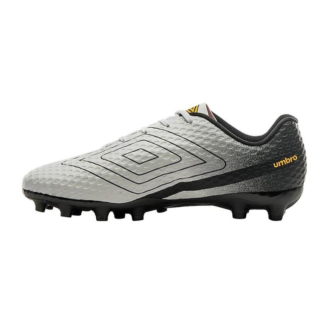 Chuteira de Campo Umbro Warskin Masculina A Chuteira de Campo Umbro Warskin Masculina foi especialmente projetada para atender às necessidades dos jogadores que buscam excelência e controle durante as partidas. Apresentando um design inovador e altamente funcional, o cabedal desta chuteira oferece um visual marcante com um padrão de degradê e uma textura única que utiliza um novo tipo de cilindro para garantir um grip aprimorado no momento do chute. Fabricado a partir de um material laminado com aplicação contínua em rolo em toda sua extensão, o cabedal exibe um grafismo em serigrafia em duas tonalidades, proporcionando um efeito degradê moderno e dinâmico. A assinatura Warskin é aplicada de forma elegante e discreta próxima ao atacador, enquanto o distintivo Diamante Umbro se destaca de maneira sutil ao longo da lateral, adicionando um toque de sofisticação ao design global da chuteira. A palmilha, feita de EVA macio com revestimento de poliéster, proporciona um apoio adicional e um conforto suave durante o uso. O solado de campo FG apresenta 14 travas estrategicamente posicionadas, com reforços costurados na parte frontal, tudo isso composto por PVC durável, garantindo aderência e estabilidade em diversos tipos de superfície. Informações:Ideal para: futebol de campo.Cabedal: em material sintético laminado. Fechamento: em cadarço para melhor ajuste aos pés.Solado: em borracha com travas fixas. Peso: 223g aproximadamente - número 39. O peso varia de acordo com a numeração. Garantia do Fabricante: 90 dias contra defeito de fabricação.ref: M129BV