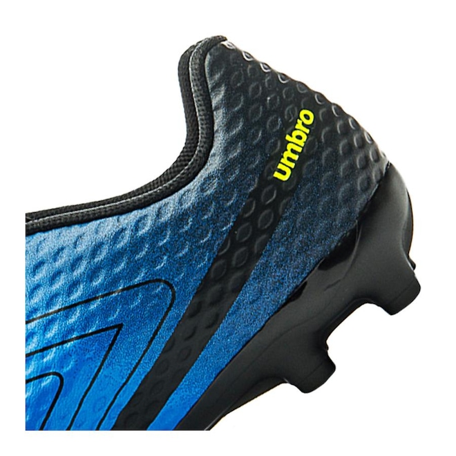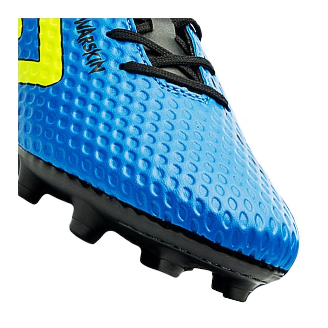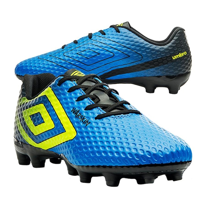 Chuteira de Campo Umbro Warskin Masculina A Chuteira de Campo Umbro Warskin Masculina foi especialmente projetada para atender às necessidades dos jogadores que buscam excelência e controle durante as partidas. Apresentando um design inovador e altamente funcional, o cabedal desta chuteira oferece um visual marcante com um padrão de degradê e uma textura única que utiliza um novo tipo de cilindro para garantir um grip aprimorado no momento do chute. Fabricado a partir de um material laminado com aplicação contínua em rolo em toda sua extensão, o cabedal exibe um grafismo em serigrafia em duas tonalidades, proporcionando um efeito degradê moderno e dinâmico. A assinatura Warskin é aplicada de forma elegante e discreta próxima ao atacador, enquanto o distintivo Diamante Umbro se destaca de maneira sutil ao longo da lateral, adicionando um toque de sofisticação ao design global da chuteira. A palmilha, feita de EVA macio com revestimento de poliéster, proporciona um apoio adicional e um conforto suave durante o uso. O solado de campo FG apresenta 14 travas estrategicamente posicionadas, com reforços costurados na parte frontal, tudo isso composto por PVC durável, garantindo aderência e estabilidade em diversos tipos de superfície. Informações:Ideal para: futebol de campo.Cabedal: em material sintético laminado. Fechamento: em cadarço para melhor ajuste aos pés.Solado: em borracha com travas fixas. Peso: 223g aproximadamente - número 39. O peso varia de acordo com a numeração. Garantia do Fabricante: 90 dias contra defeito de fabricação.ref: M129BV