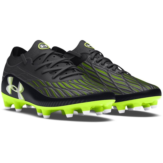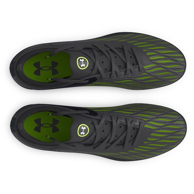 Cabedal em UA CLONE proporciona um verdadeiro ajuste personalizado, independentemente do tamanho do seu pé. Uma camada interna de material flexível de jacquard auxetic se molda ao redor do pé para um ajuste e sensação precisos, semelhantes a luvas. CABEDAL: 100% Sintético. SOLA: 100% Termoplástico (TPU).