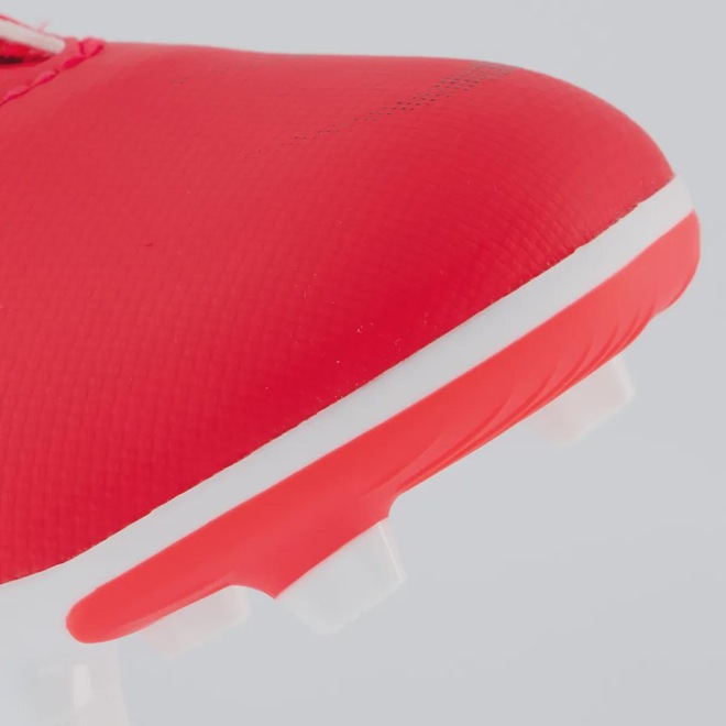 Composição cabedal (parte superior): Material sintético texturizado Palmilha: Em EVA e removível; facilita na higienização do produto Solado: TPU com travas altas, fixas e multidirecionais Forro: Material têxtil levemente acolchoado Cor predominante: Branca e Vermelha Indicado para: Campo Lingueta: Integrada Origem: Importada Gênero: Unissex Idade: Juvenil Ajuste: Cadarço Peso aproximado: 330g o par n° 32