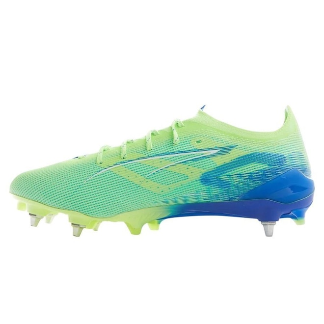 A Chuteira Puma Ultra SPEEDSYSTEM foi desenvolvida para quem busca máxima velocidade e performance em campos de terrenos mistos e macios. Inspirada em 23 anos de experiência da PUMA Motorsport, combina engenharia de precisão com design arrojado. Seu cabedal em malha leve recebe acabamento em couro GripControl Pro, além da estrutura PWRTAPE SQD que estabiliza o pé sem comprometer a agilidade. Já o solado SPEEDSYSTEM, com contraforte externo no calcanhar, une pitões FastTrax e pitões cônicos aparafusados, entregando tração incomparável e aceleração explosiva do início ao fim da partida.