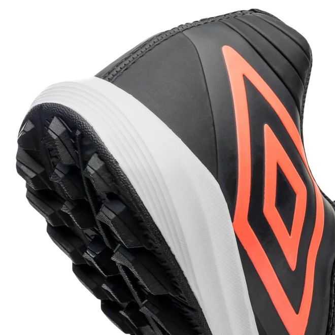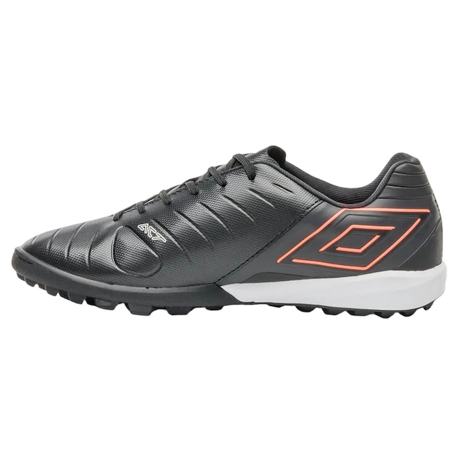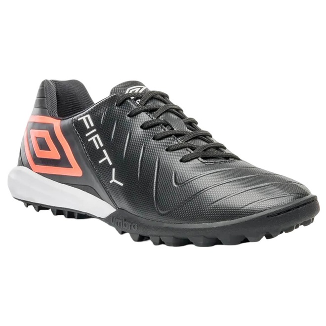 A Chuteira Society Umbro Fifty VI é indicada para jogadores iniciantes e intermediários. O modelo segue a linha da família Fifty, com duas cores e textura diferenciada. A boca do calçado é deslocada para o lado externo, proporcionando um ajuste adaptável e confortável, além de priorizar a área de chute sem sobreposição dos cadarços. O cabedal traz dois tipos de material laminado com textura e alta frequência, que melhoram o grip e o domínio da bola. O forro traseiro em mesh com acabamento luvado no colarinho oferece maior resistência à abrasão. Possui palmilha com tecnologia SOFT BLUE, que garante conforto superior, solado com entressola em EVA injetado e sola em TPU com travas em chevron.