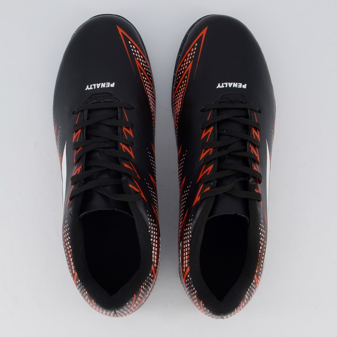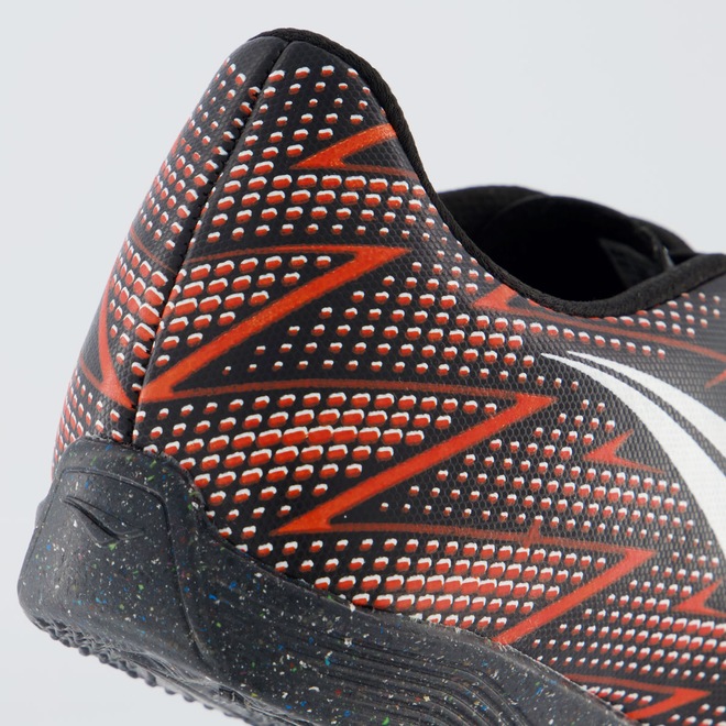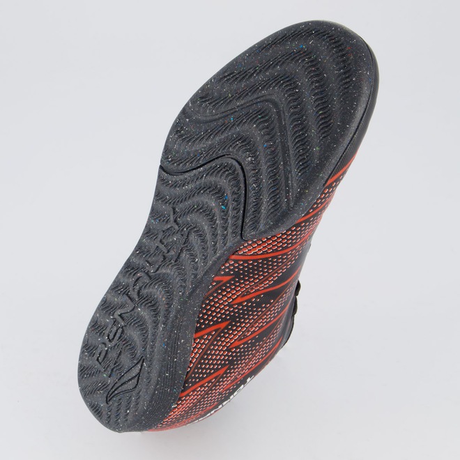Tecnologias NON-MARKING: Solado de borracha que garante máxima aderência e tração sem deixar marcas ou riscos na quadra Composição cabedal (parte superior): Confeccionada em sintético Palmilha: EVA forrada e removível; facilita na higienização Forro: Material têxtil com acolchoamento reforçado Solado: Borracha antiderrapante, colado Lingueta: Fina e flexível Cor predominante: Preta Indicado para: Futsal Altura da sola: 2 cm Gênero: Masculino Origem: Nacional Ajuste: Cadarço Peso aproximado: 550g o par nº 40