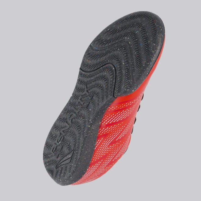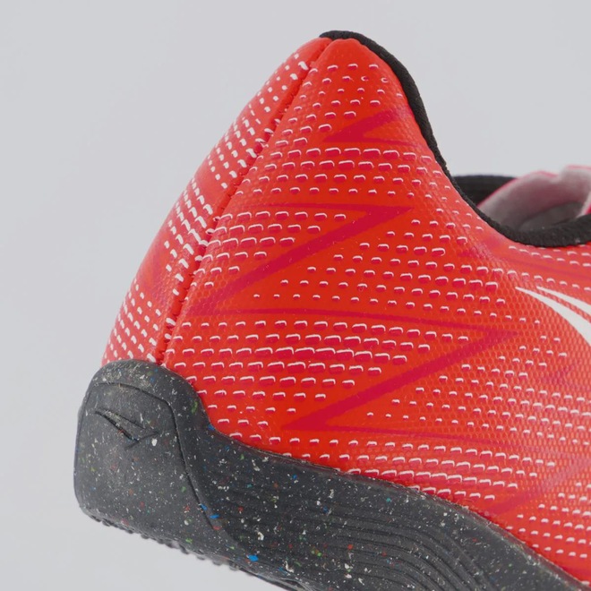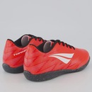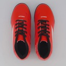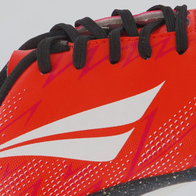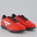 Composição cabedal (parte superior): Confeccionada em sintético Palmilha: EVA forrada e removível; facilita na higienização Forro: Material têxtil com acolchoamento reforçado Solado: PVC com travas altas e fixas, colado Lingueta: Fina e flexível Cor predominante: Vermelha Indicado para: Futsal Gênero: Unissex Origem: Nacional Idade: Juvenil Ajuste: Cadarço Peso aproximado: 370g o par nº 32